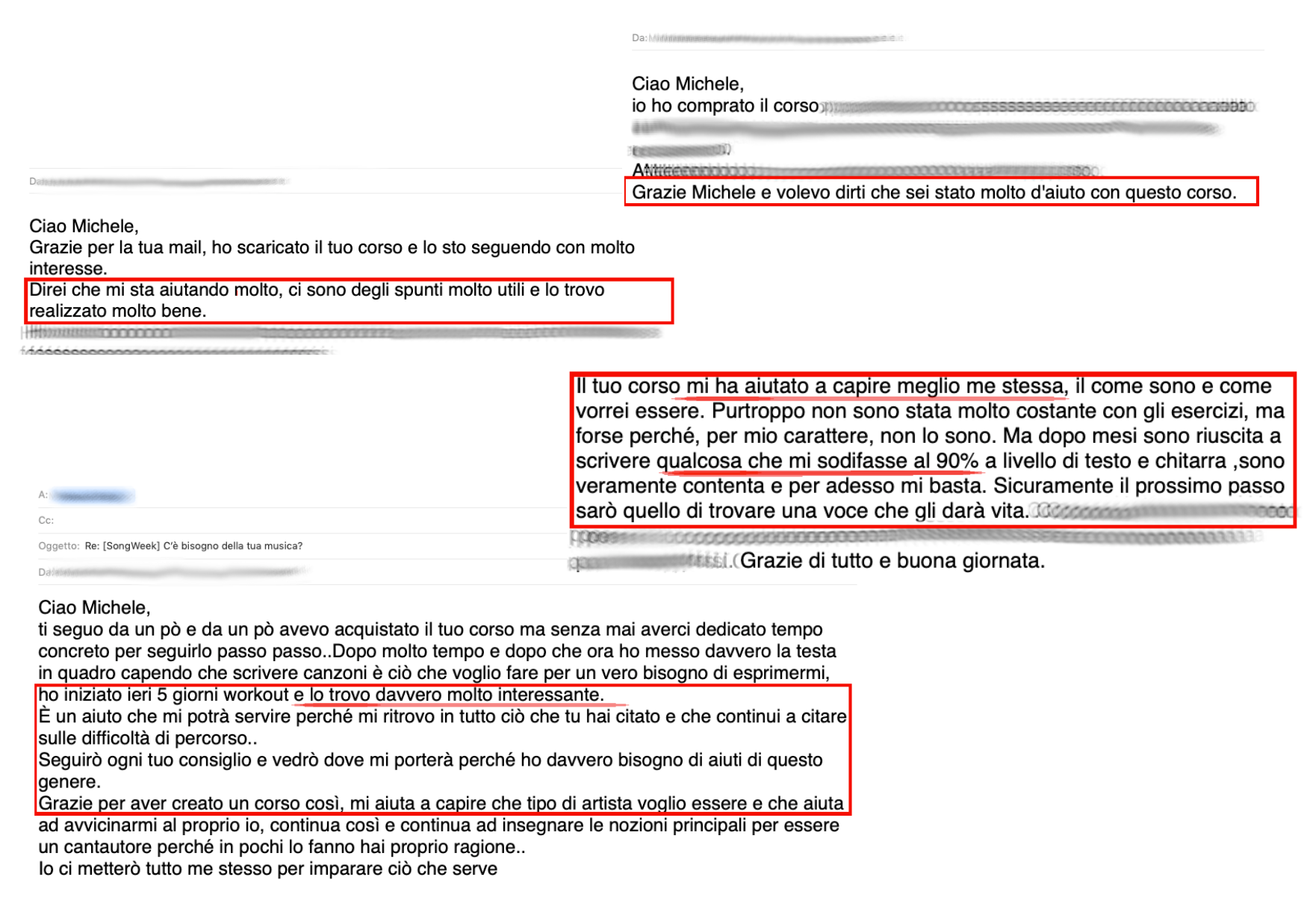 Grazie alla mia garanzia incondizionata al 100%, puoi accedere al Video Corso, provarlo per 15 giorni, cominciare scrivere Canzoni che rispecchino il tuo modo di esprimerti e di pensare...